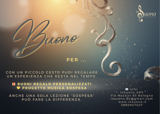 Offrire musica significa regalare tempo, ascolto e crescita. Su richiesta, prepariamo buoni personalizzati con il nome della persona a cui sono destinati e con il percorso scelto.